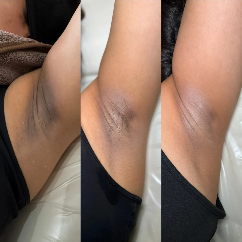 The underarm peel is a specialised treatment aimed at reducing pigmentation, smoothing texture, and evening skin tone in this delicate area.